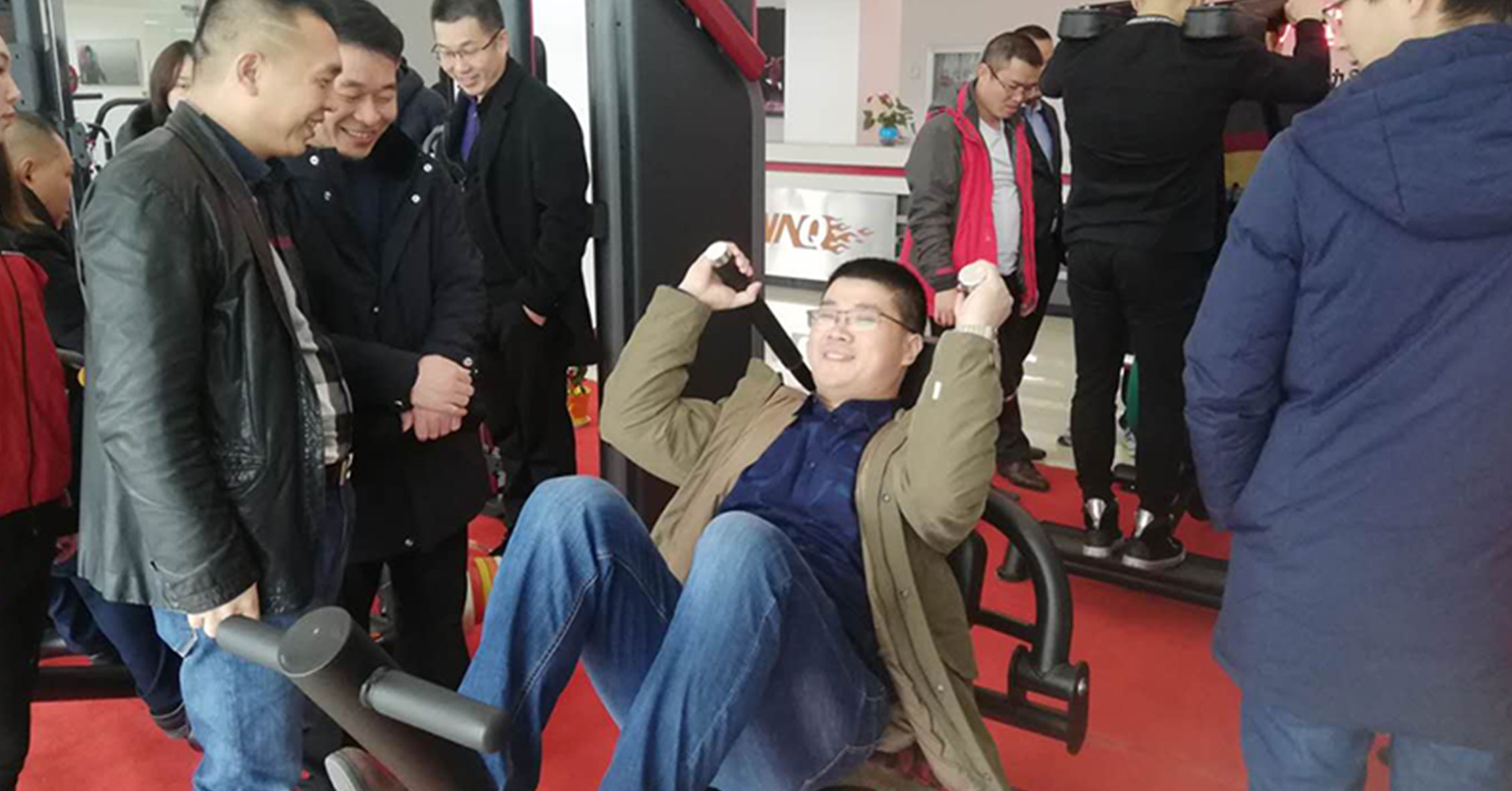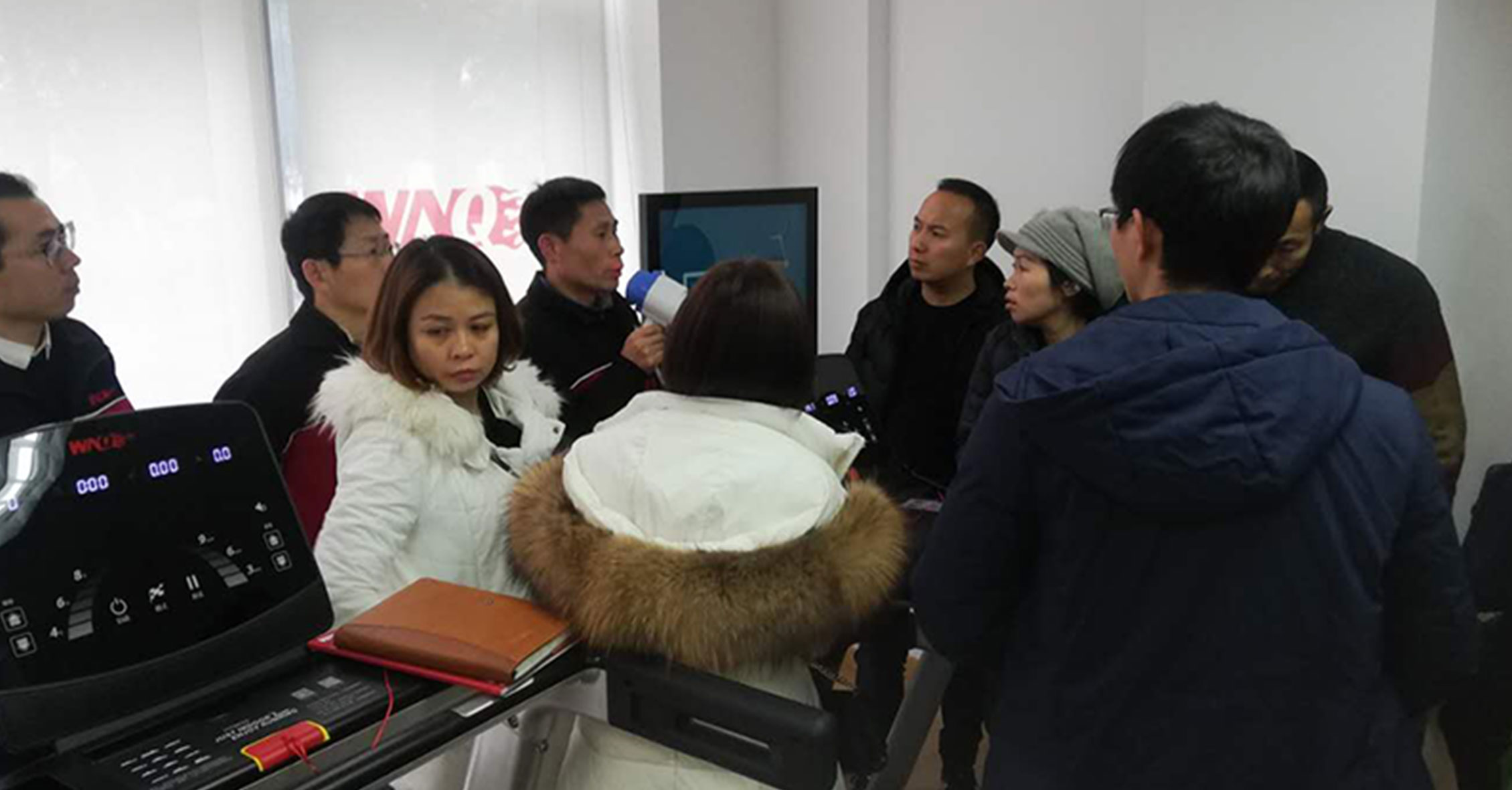 在展厅,我司组织了一场单车竞赛,经销商们踊跃参与。最新开发的单车竞赛系统给单车竞赛增添了许多新的趣味。比赛过程中大家高喊助威,最终前三名都获得动感单车奖励!