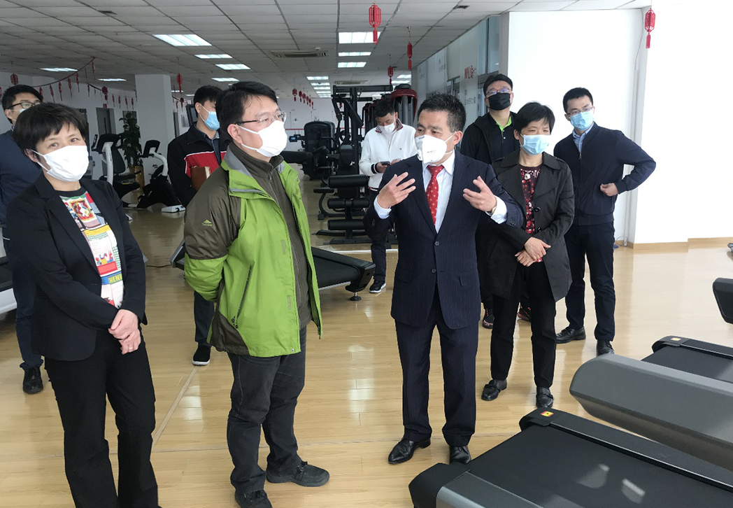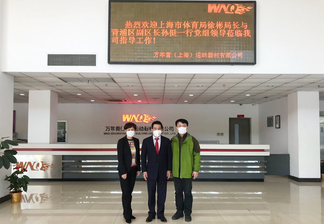 4月15日下午,上海市体育局徐彬局长与青浦区常委、副区长孙挺一行莅临我司调研复工复产复市的情况,我区体育局顾桂芳局长及工业园区陈晓荣董事长等领导陪同参观。